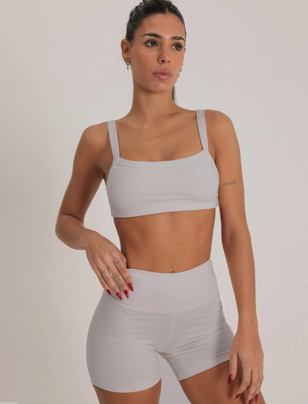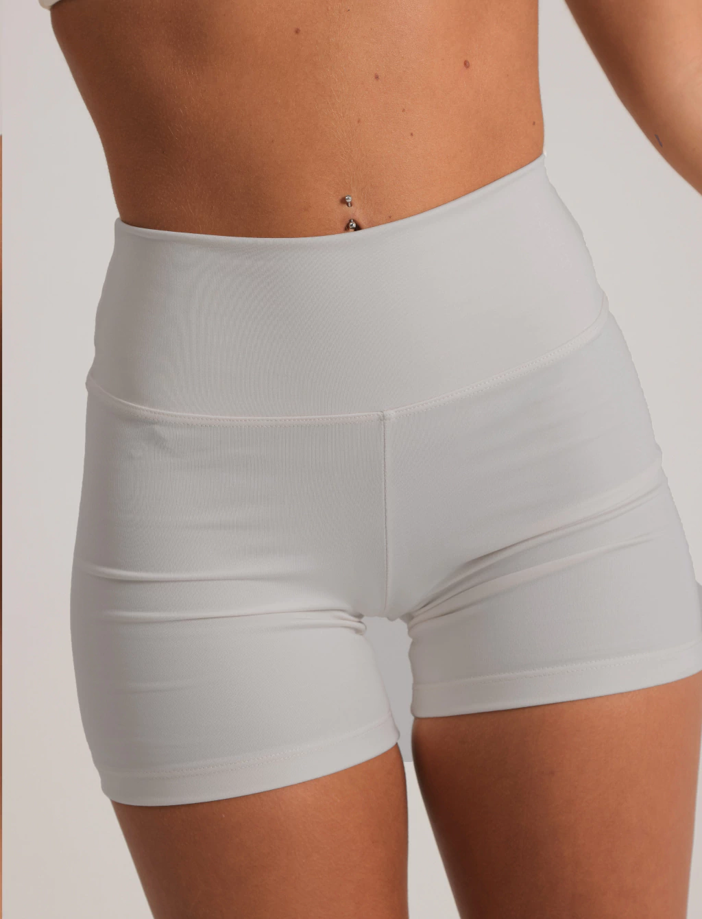 Short tiro alto con cintura ancha, super comodo y con el calce ideal. Esta realizado en polisap color ivory