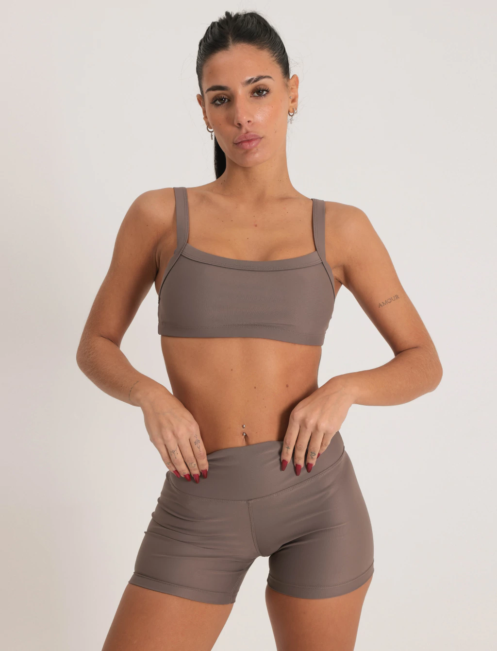Top tipo deportivo con detalle de breteles anchos, y elastico de 2 cm en cintura, y es de tela doble.